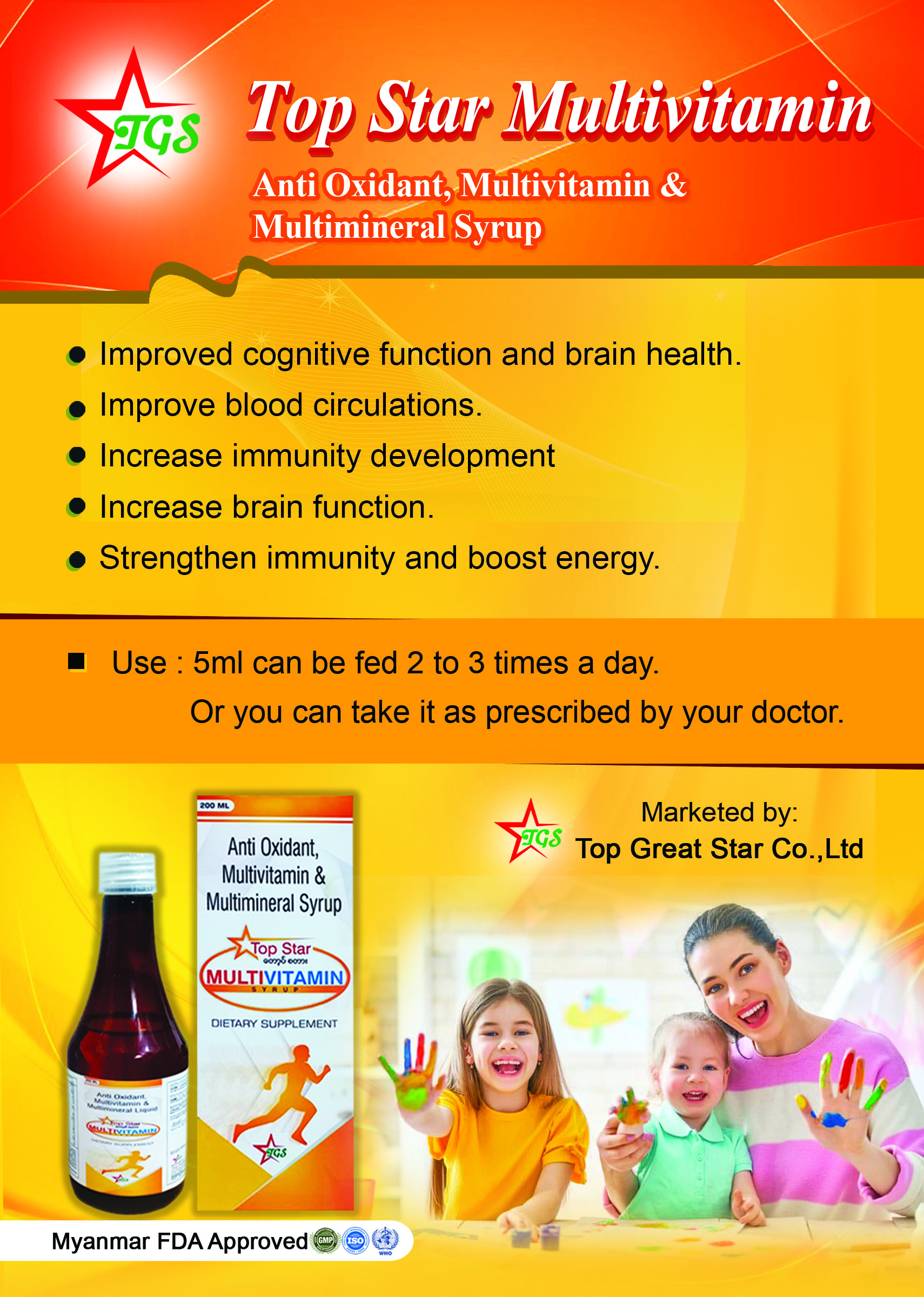 - ကလေးများ၏ လိုအပ်သော ဗီတာမင်များကို ဖြည့်တင်းပေးပြီး ကျန်းမာသန်စွမ်းစေပါသည်
